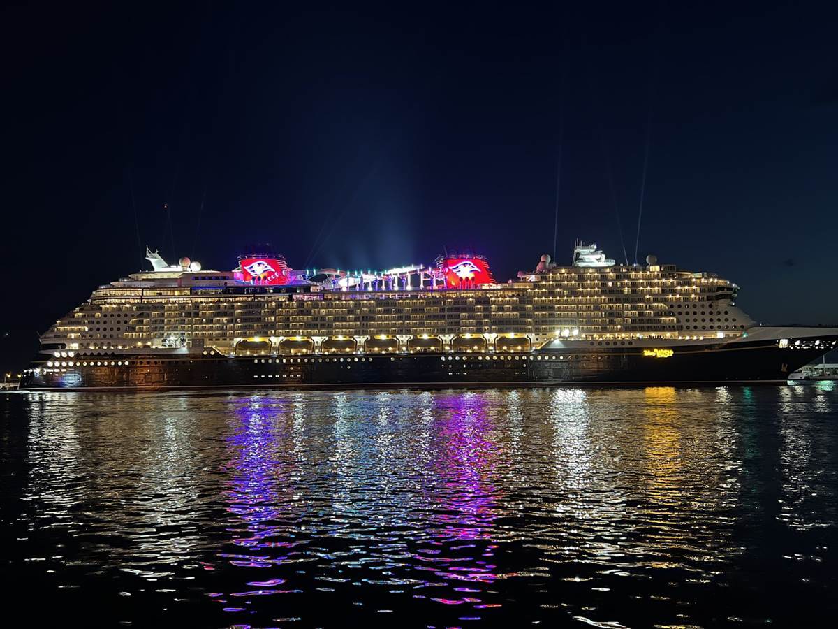 - Out of the darkness of the early morning hours, fans in Port Canaveral, Florida lined up along the ocean shores to watch the Disney Wish arrive at its new home.