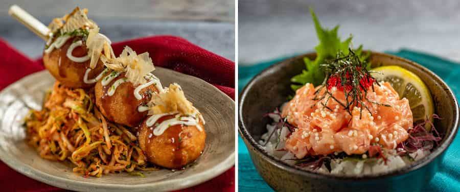 - Takoyaki: Octopus, green onion, and cabbage bites topped with tonkatsu sauce, bonito flakes, and nori (New)