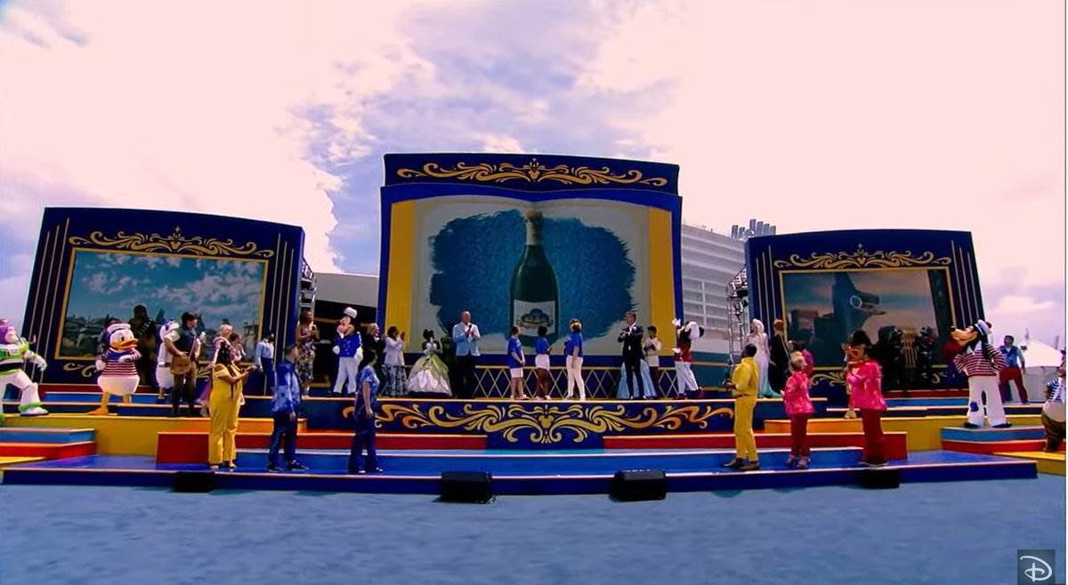 - The event culminated with the ceremonial breaking of a champagne bottle like only Disney can do, with a dash of pixie dust and a symphony of pyrotechnics, special effects, music and fanfare.