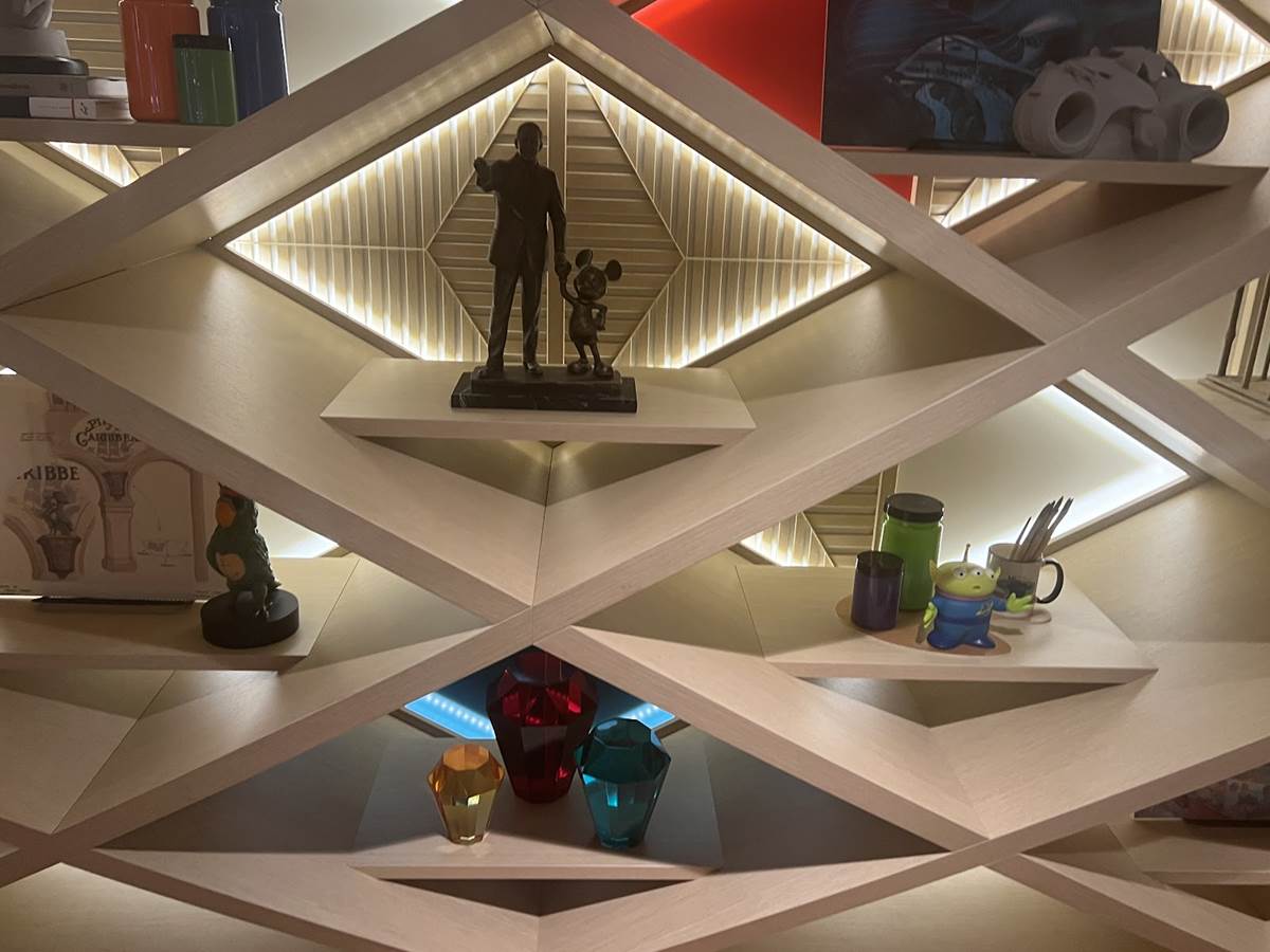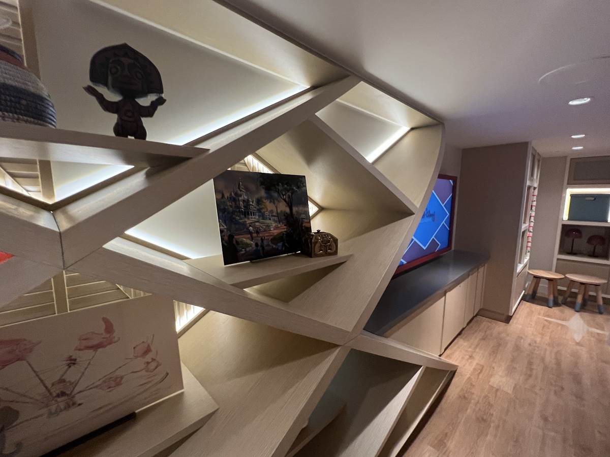 In the play room, magical murals will feature interactive hand cranks that trigger delightful effects. Little ones will be able to spark a cascade of ice magic from Elsa’s hand, send Aladdin and Jasmine swaying on the magic carpet, uncover Flynn Rider as he clings to Rapunzel’s enchanted tresses, and more. A toy train will chug along the ceiling, filling the space with colorful lights, playful sounds and kinetic energy.