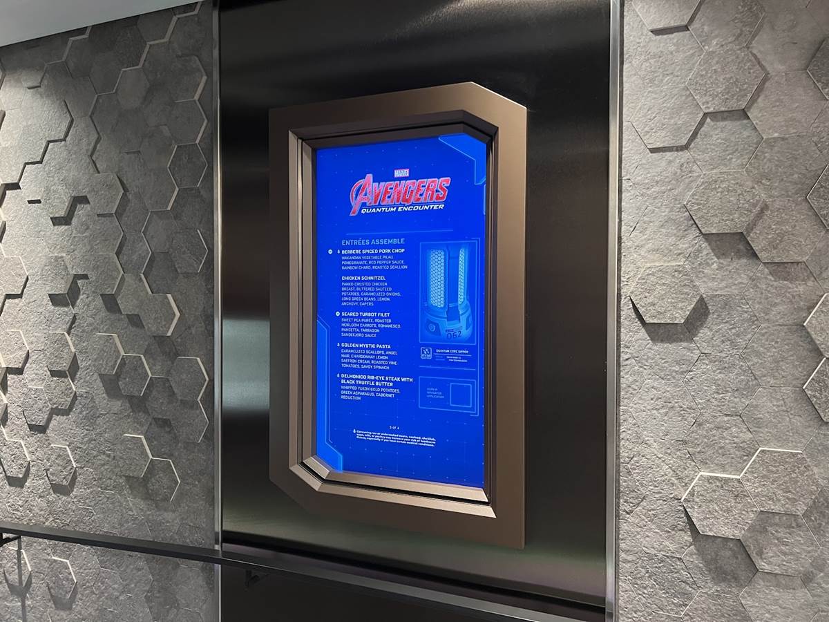 When enough of the Quantum Cores are activated at the same time, the entire venue becomes supercharged as energy pulses through the power channels in the walls and ceiling. Outfitted with state-of-the-art Pym Tech and decked out in signature Stark-itecture style, the Worlds of Marvel restaurant offers surprises in all shapes and sizes, from a distinctly Marvel hexagonal motif to the various “Easter eggs" and unknown details embedded in the show.