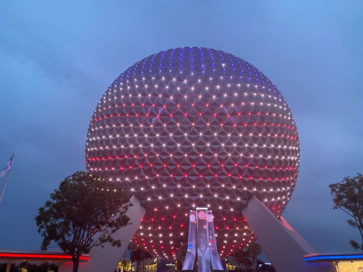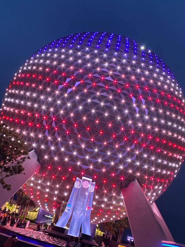 - “Spaceship Earth is ready to shine brightly with a very limited-time ambient lighting design celebrating Independence Day."
