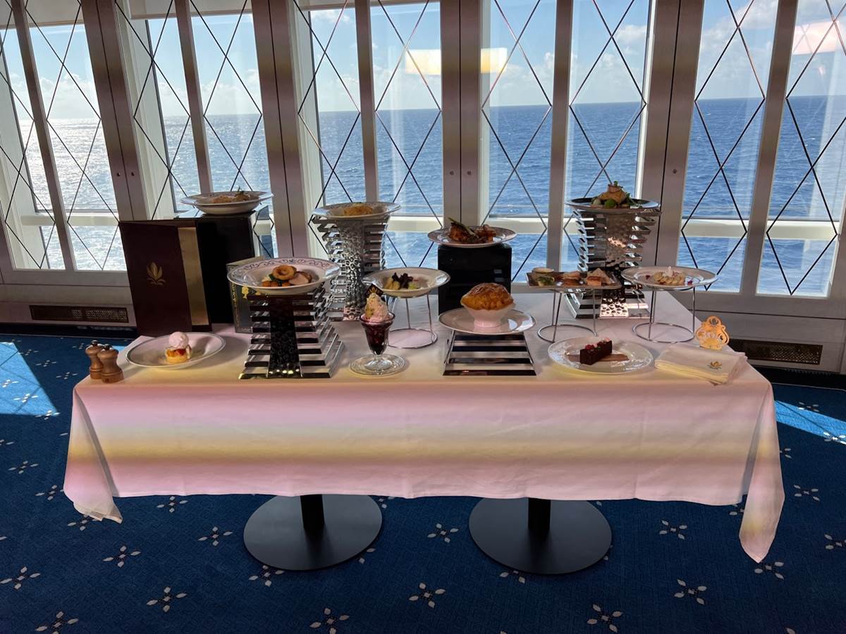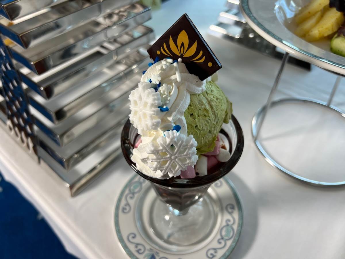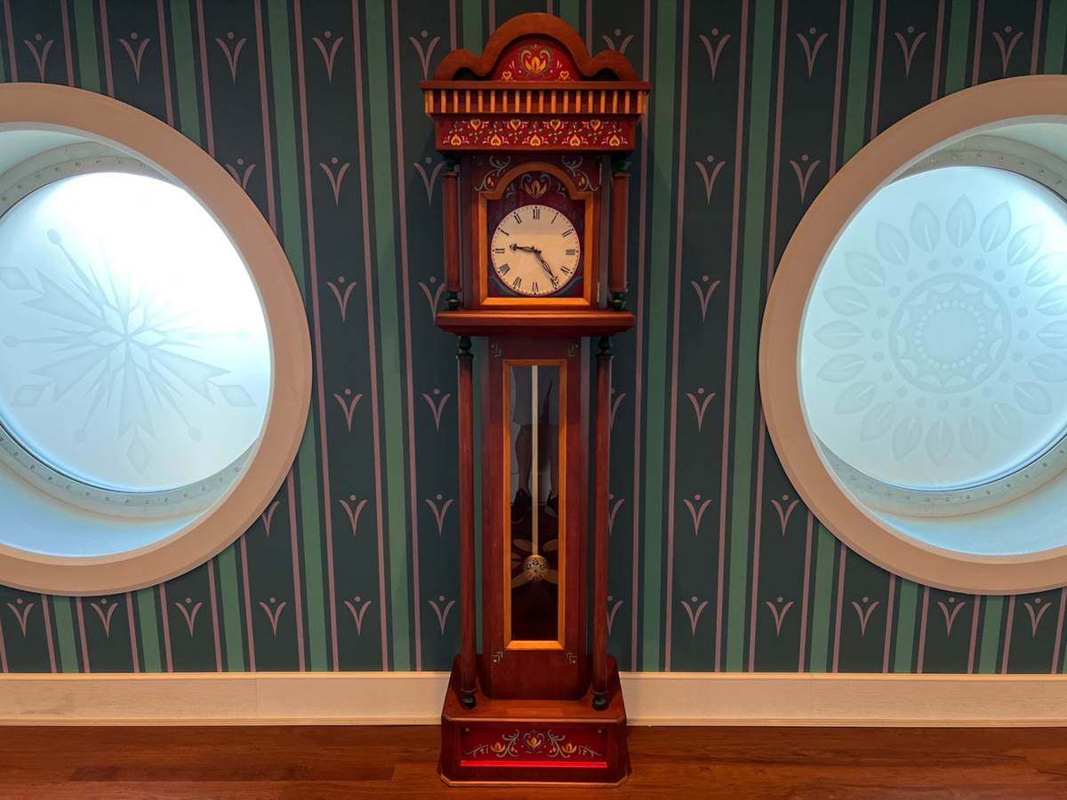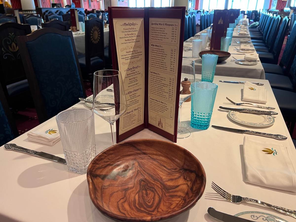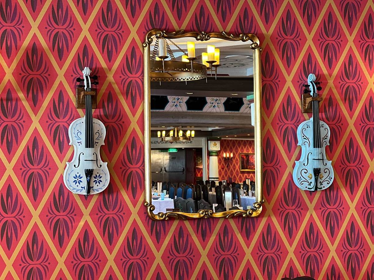 - This theater-in-the-round entertainment venue features dining tables surrounding a central stage, with performances and show effects spreading throughout the room. Invisible fiber optics embedded in the ceiling conjure Elsa’s icy magic, and panoramic windows magically transform from real-time ocean views to the colorful dancing lights of the Aurora Borealis.