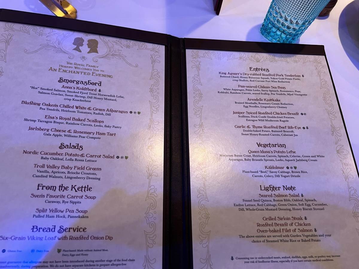 - The one-of-a-kind menu for Arendelle: A Frozen Dining Adventure combines traditional flavors and ingredients from the Nordic region with modern, family-friendly fare. Guests can delight in this scrumptious smorgasbord of superior seafoods, rustic game dishes and tasty nods to the Frozen story.