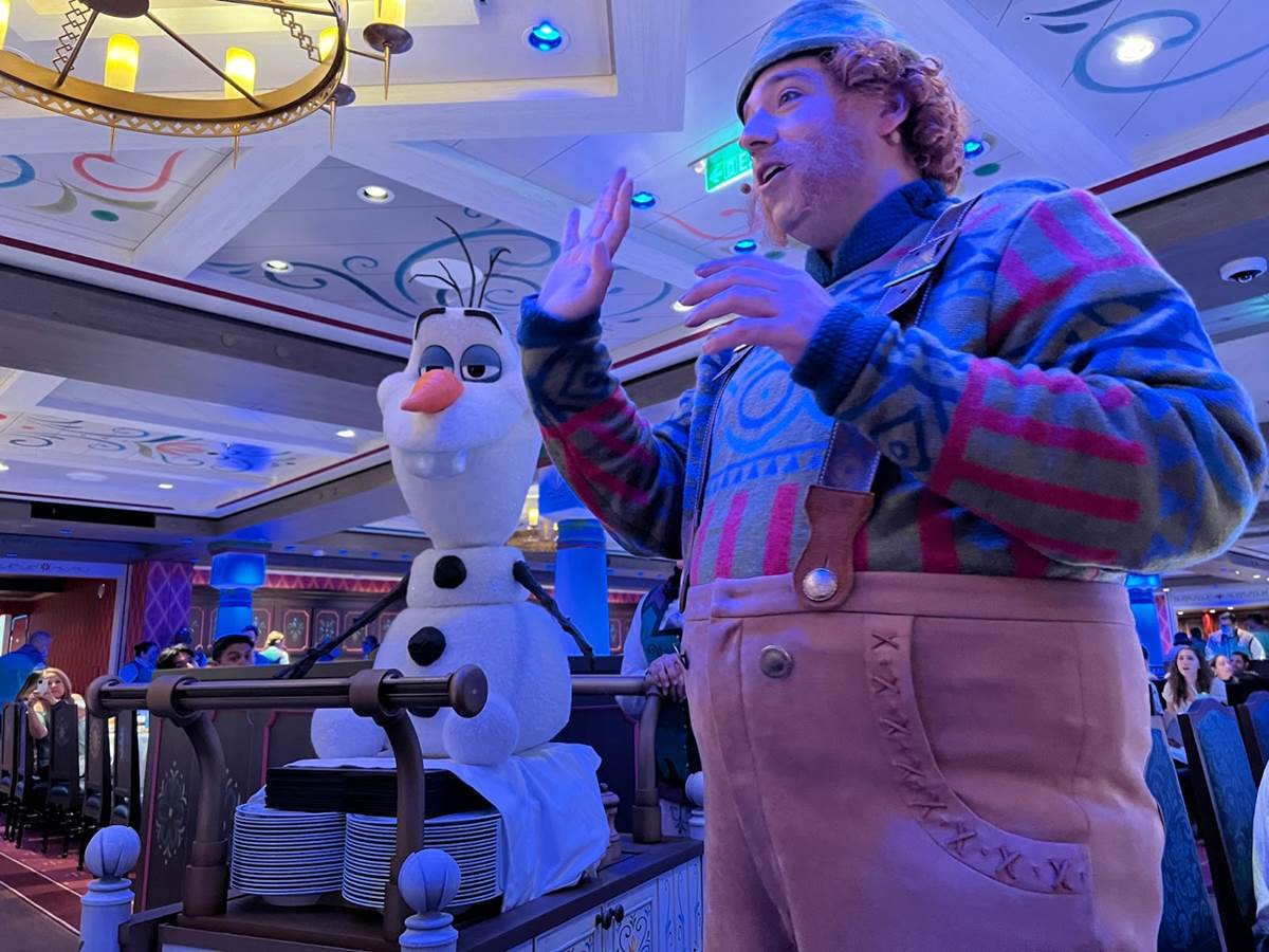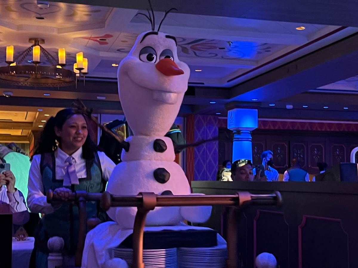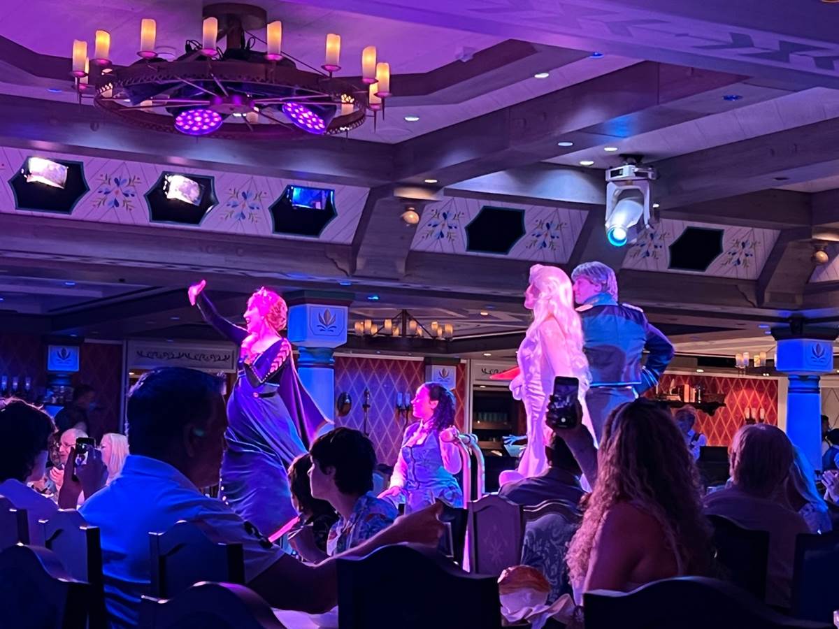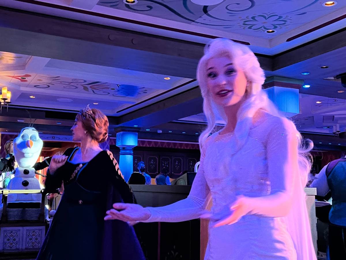 - Many of the loveable characters from Frozen, including Anna, Elsa, Olaf and even Wandering Oaken, come out to perform for diners.