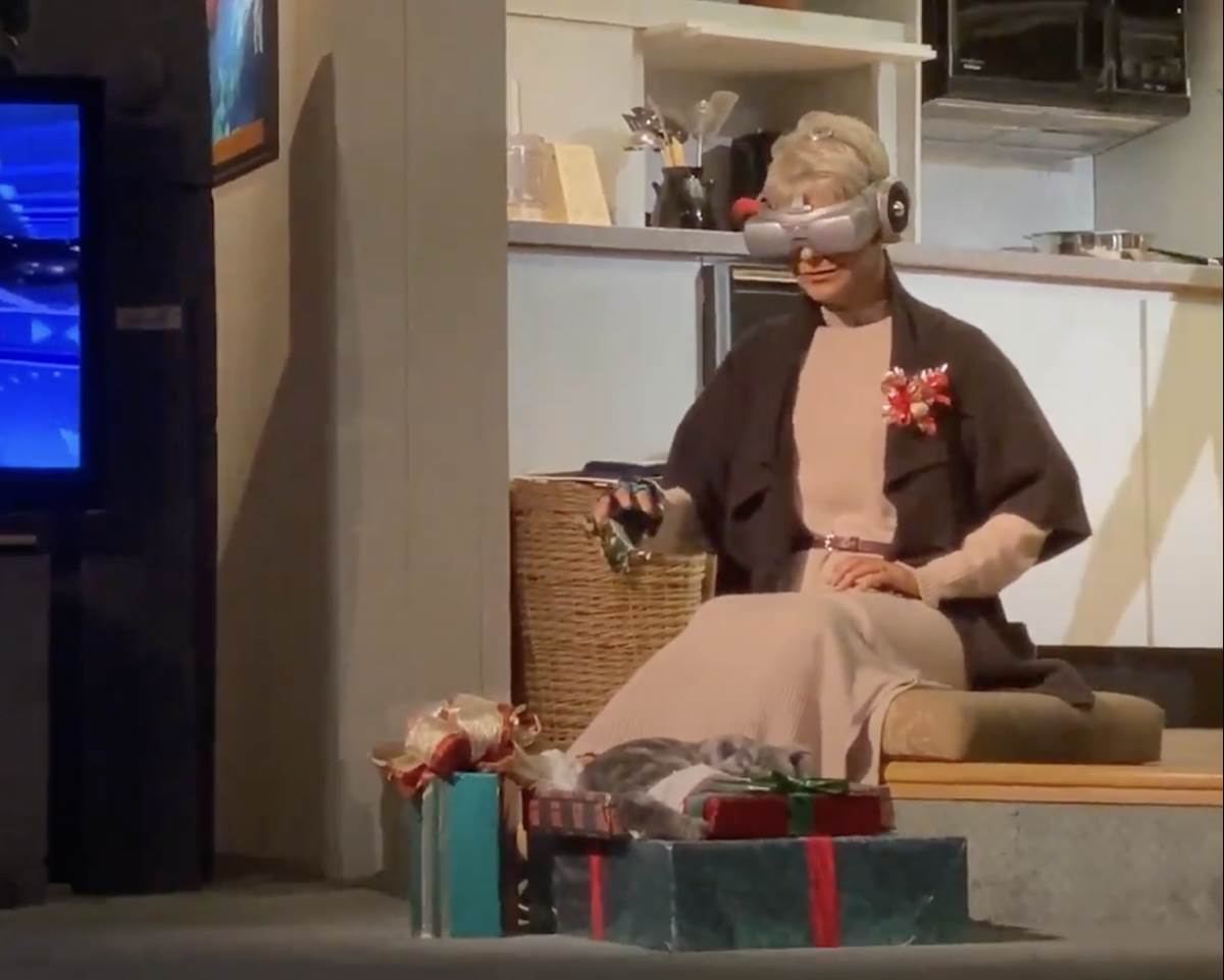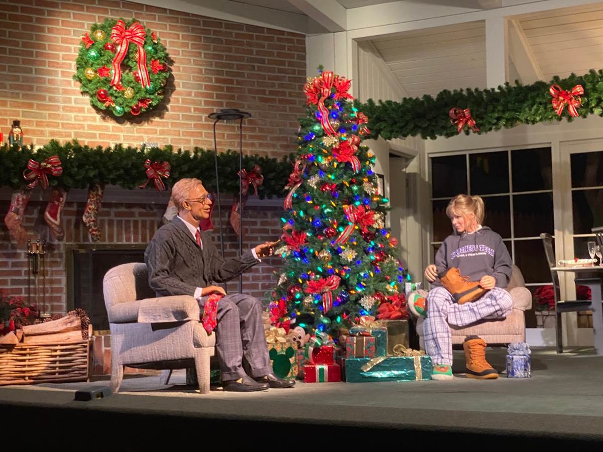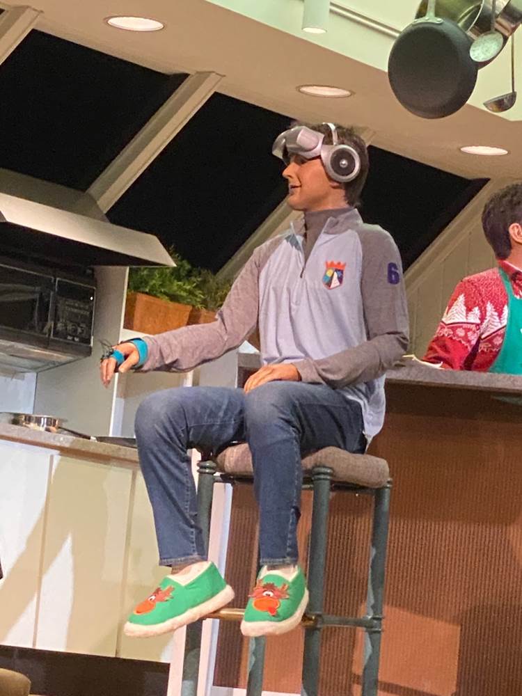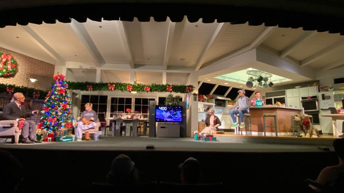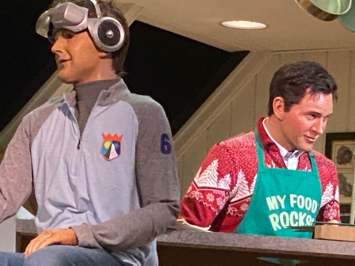 - The patriarch of the family, John, is sporting new, darker hair, a red ugly Christmas sweater, and an apron that says “My Food Rocks!" That is likely a reference to Food Rocks, an extinct EPCOT show all about good nutrition.