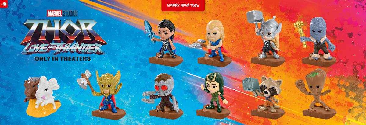 - Available now, Marvel fans can head to their local McDonald’s and pick up new Thor: Love and Thunder toys with a Happy Meal.