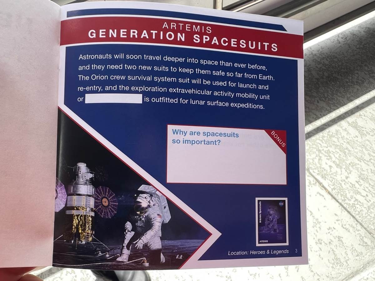 The Heroes and Legends exhibit is our last stop on the hunt, here we learn about the Artemis Generation Spacesuit while paying tribute to those who paved the way.
