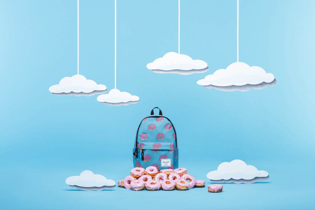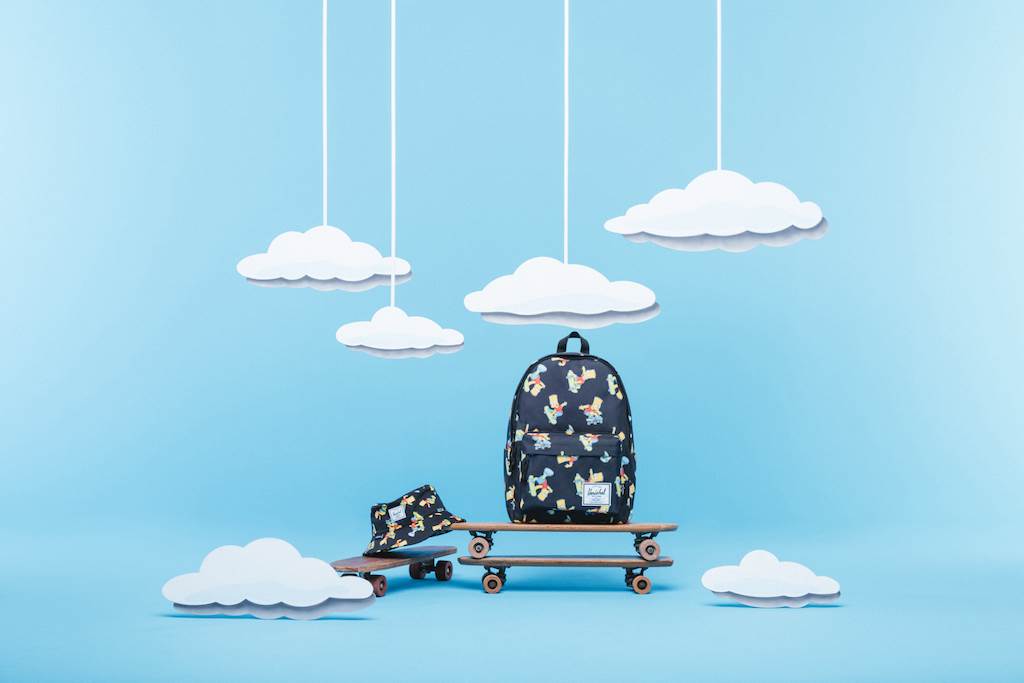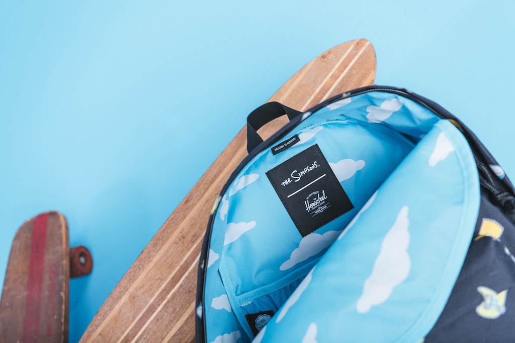 - The Simpsons x Herschel Collection features fun, vibrant styles made from 100% recycled fabrics and a custom cloud print liner.