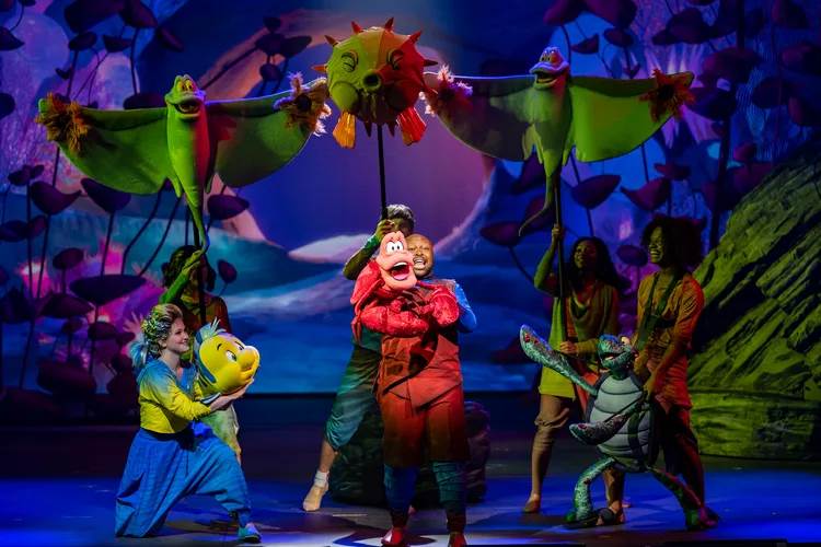 - The leaders pointed out that "Throughout the show, playful scenic designs and state-of-the-art video projections will transform the Walt Disney Theater into a 360-degree undersea environment."