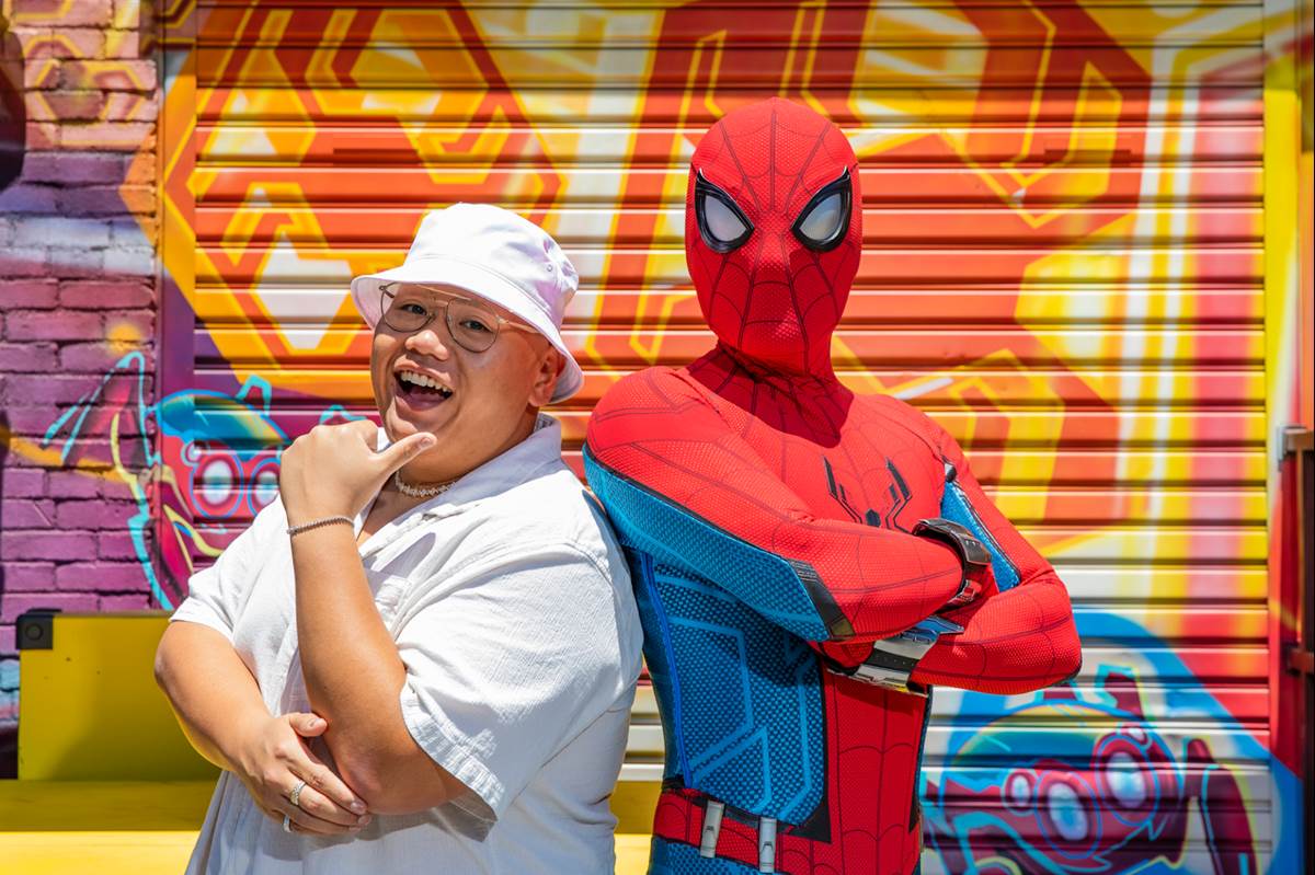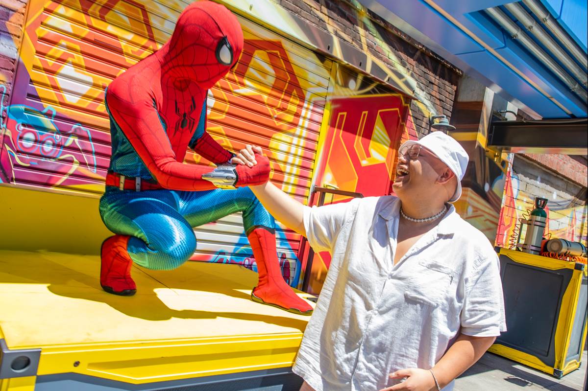 Jacob Batalon Meets Spider-Man in Avengers Campus at Disney California Adventure