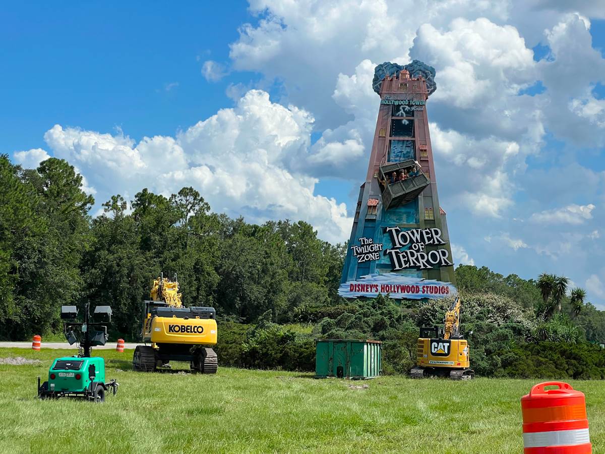 - The fan-favorite billboard that advertises The Twilight Zone Tower of Terror at Disney’s Hollywood Studios on World Drive near the park is currently being removed, leaving an open expanse of green dividing the north and south traffic on one of Walt Disney World’s main thoroughfares.