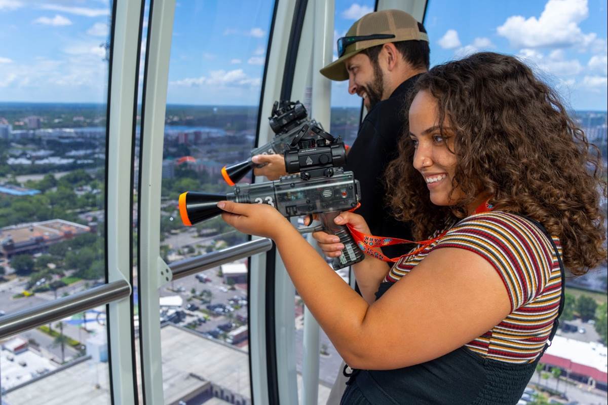 - Statement from ICON Park Officials: “Following recent, well-received innovations from The Wheel at ICON Park, which provide customized experiences for guests, allowing them to play their own music playlist or listen to Orlando’s history story, the Bullseye Blast game satisfied guests who enjoy gaming, arcades and virtual reality. From capsules, guests use a toy infrared device to compete and hit round, colorful targets on rooftops. The experience was thoroughly tested and well received by guests during a process spanning many months.