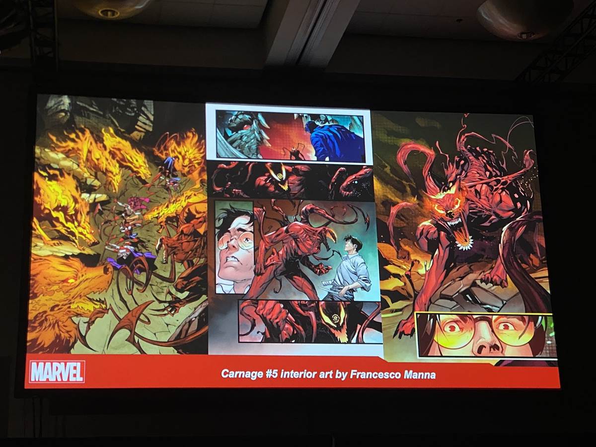 - We also learned that Venom and Carnage will meet again at the end of their current runs and got a look at some interior art from the upcoming “Carnage #5."