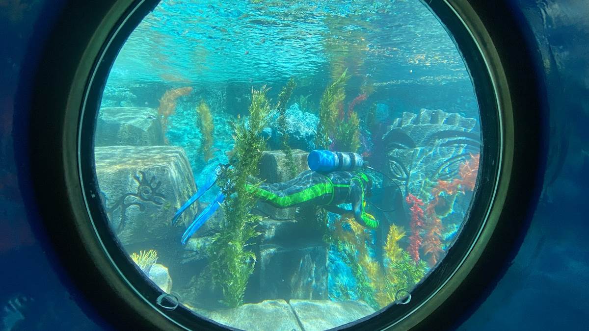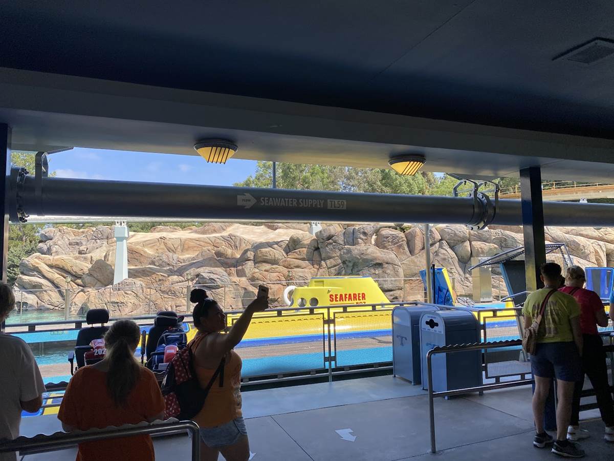 In the attraction, guests make their way through the Nautical Exploration and Marine Observation outpost in Tomorrowland, where they board a submarine to journey into a vibrant reef alongside divers before “diving" even further to go on an expedition to see an undersea volcano. Along the way, our Captain turns on the hydrophones to hear the fish talk, quite literally, when we stumble upon familiar friends from the Pixar Animation Studios classic, Finding Nemo. It seems that Nemo has been separated from his dad once again and now, Nemo, Squirt, Marlin, Dory, and all the characters we know and love are accompanying us in various scenes alongside our journey.