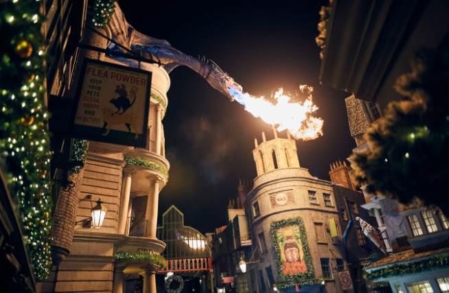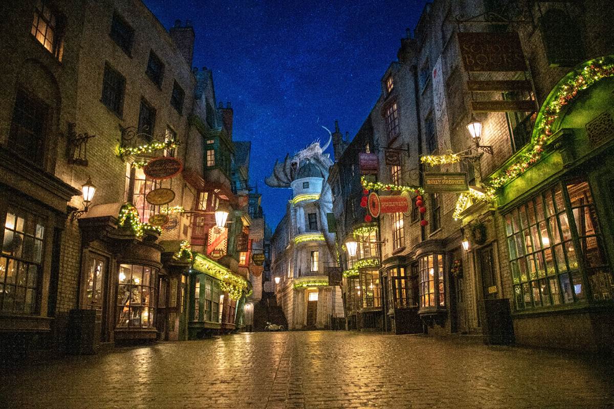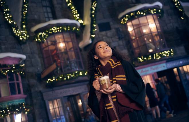 - The spectacularly themed lands of The Wizarding World of Harry Potter will transform into wizarding wonderlands for the Holidays, complete with festive décor throughout the iconic streets of Hogsmeade and Diagon Alley that includes themed decorations, garlands and lights.