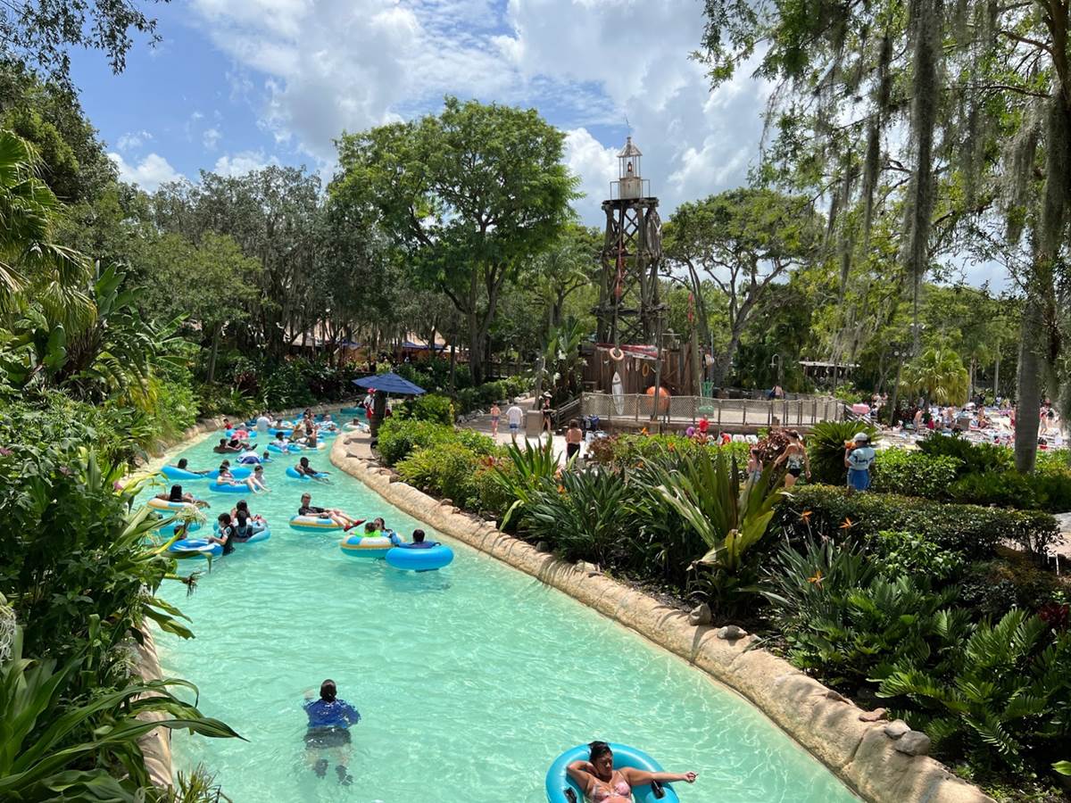 Typhoon Lagoon’s newest attraction is the immaculately themed family raft ride Miss Adventure Falls. It even features an animatronic!