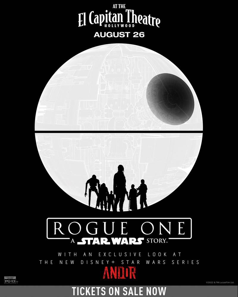 In anticipation of the upcoming release of Star Wars: Andor on Disney+, Rogue One: A Star Wars Story will be playing at the El Capitan Theatre in Hollywood beginning August 26th.