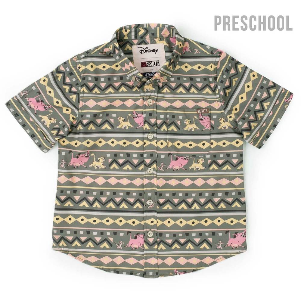 - The entire The Lion King collection is available now on the RSVLTS site. All four shirts are traditional button down, made with KUNUFLEX stretch material and come in sizes XS-4XL for adults ($70) and 2T-5T for kids ($39)