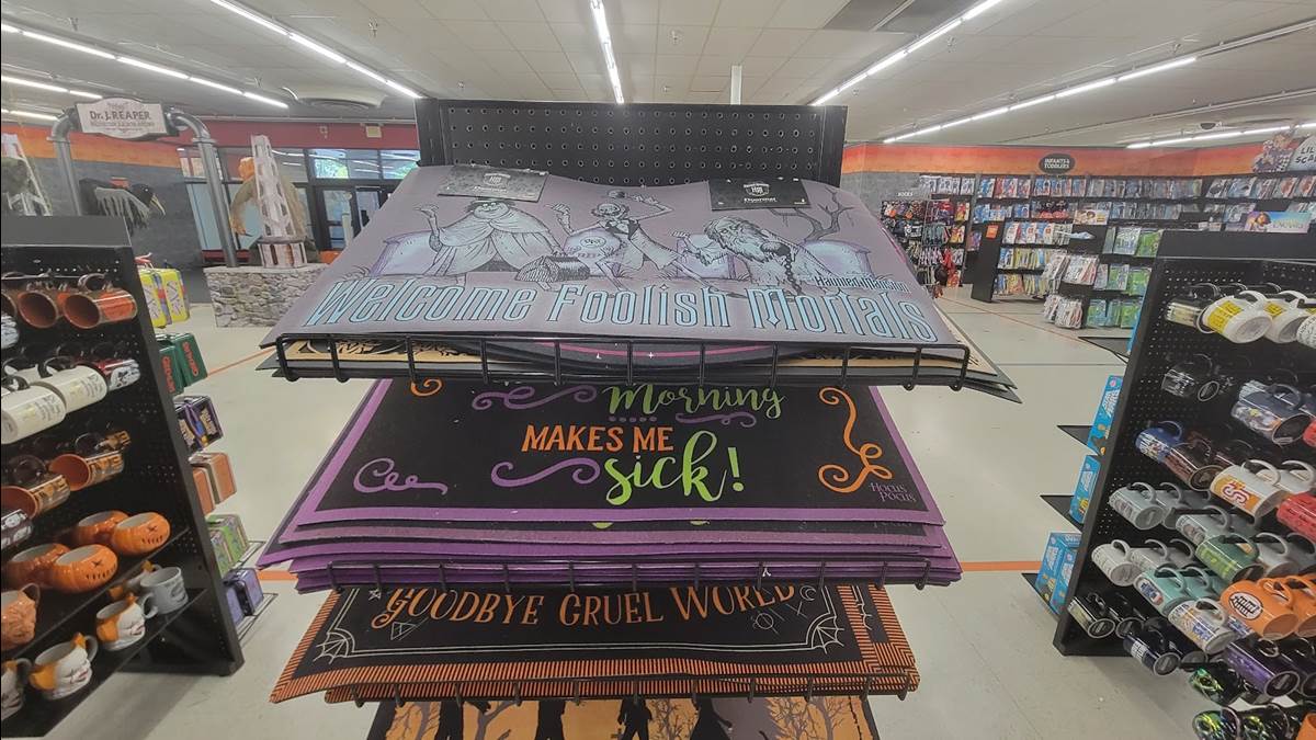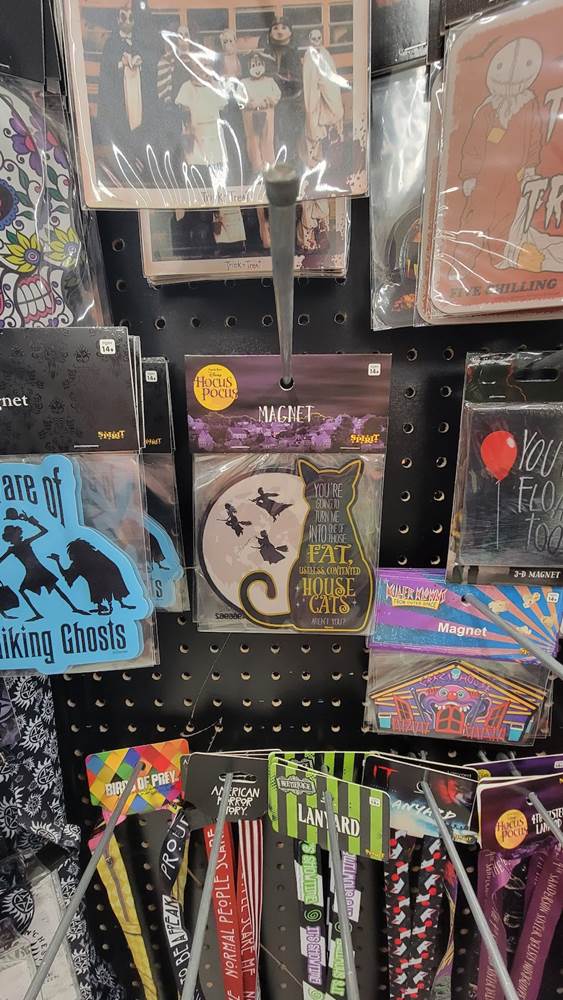 A bit more subtle, we also spotted a collection of magnets and other merchandise at the store featuring characters from the Haunted Mansion, Tim Burton’s The Nightmare Before Christmas, and the seminal classic, Hocus Pocus.
