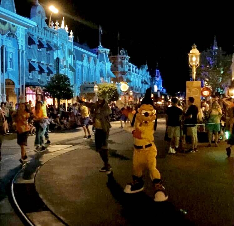 - There are two show stops where guests are invited to come out and dance with the Party Pack, along the middle of Main Street U.S.A. and right in front of the Main Street Train Station.