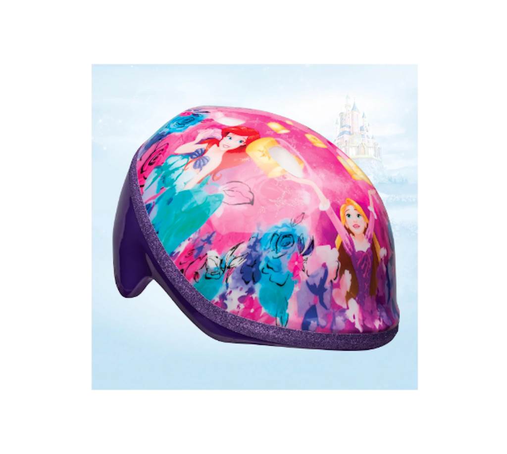 Help keep your child protected and looking good with this Disney Toddler Helmet that’s lined with soft interior padding, ventilation cutouts and a non-pinching buckle to provide a comfortable, secure fit that won't rub, irritate or distract. The stylish, brightly colored design featuring Belle, Rapunzel and Ariel.