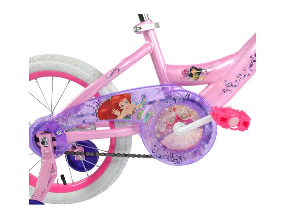 This 16" bike, a perfect first-bike for kids just learning to ride. Wide training wheels add stability and allow your kids to focus on learning how to pedal, brake, and steer without having to worry about balance. They can be moved to a higher position on the back wheel or removed altogether to convert the ride into a big-kid bike. A removable doll Carrier and handlebar streamers add a bit of fun!