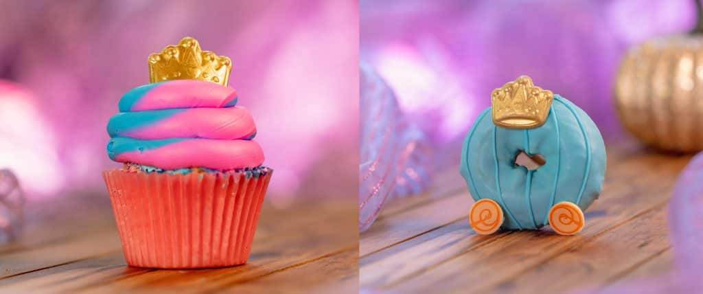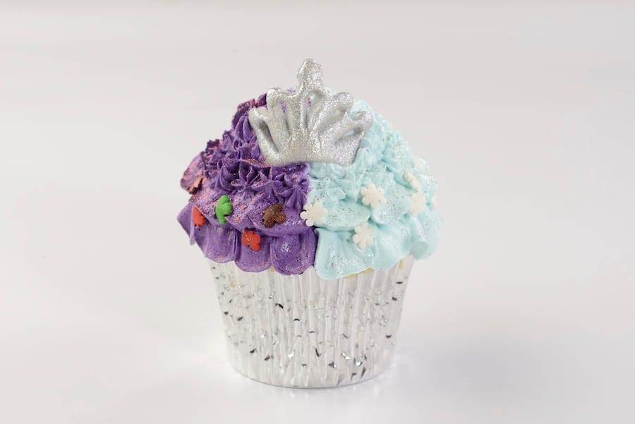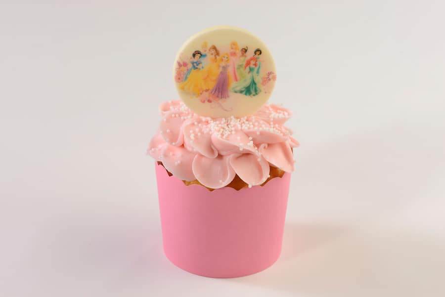 - Perfectly Princess Cupcake: Vanilla sponge cupcake with pink buttercream ruffles, white nonpareils sprinkles, and Princess white chocolate coin