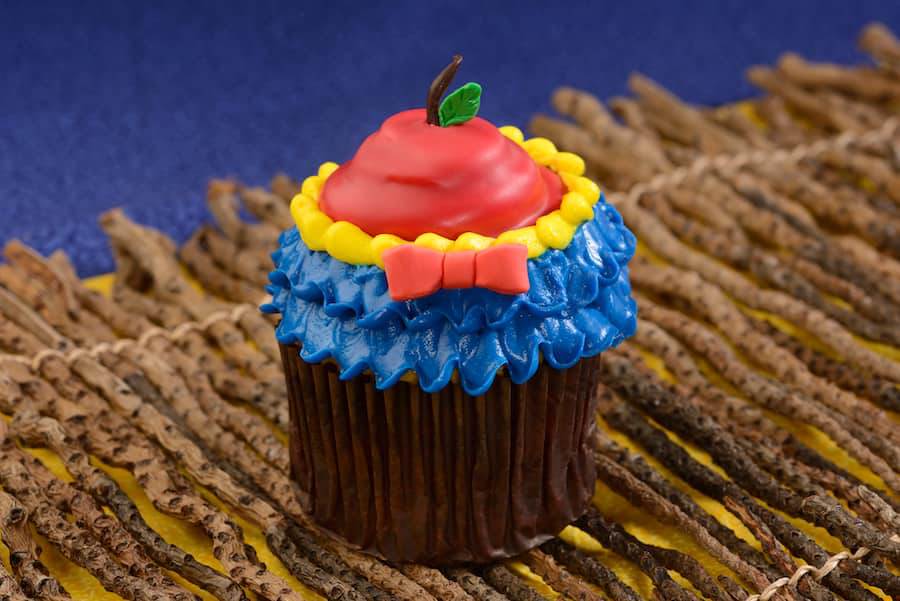- Snow White Cupcake: Vanilla cupcake filled with a spiced caramel apple filling topped with caramel buttercream, red chocolate dip, and a red bow