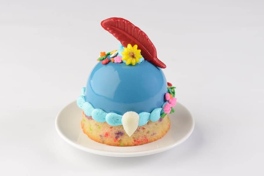 - Pocahontas Mousse: Pineapple-banana cake, coconut cream cheese mousse, chocolate feather, and candy gem
