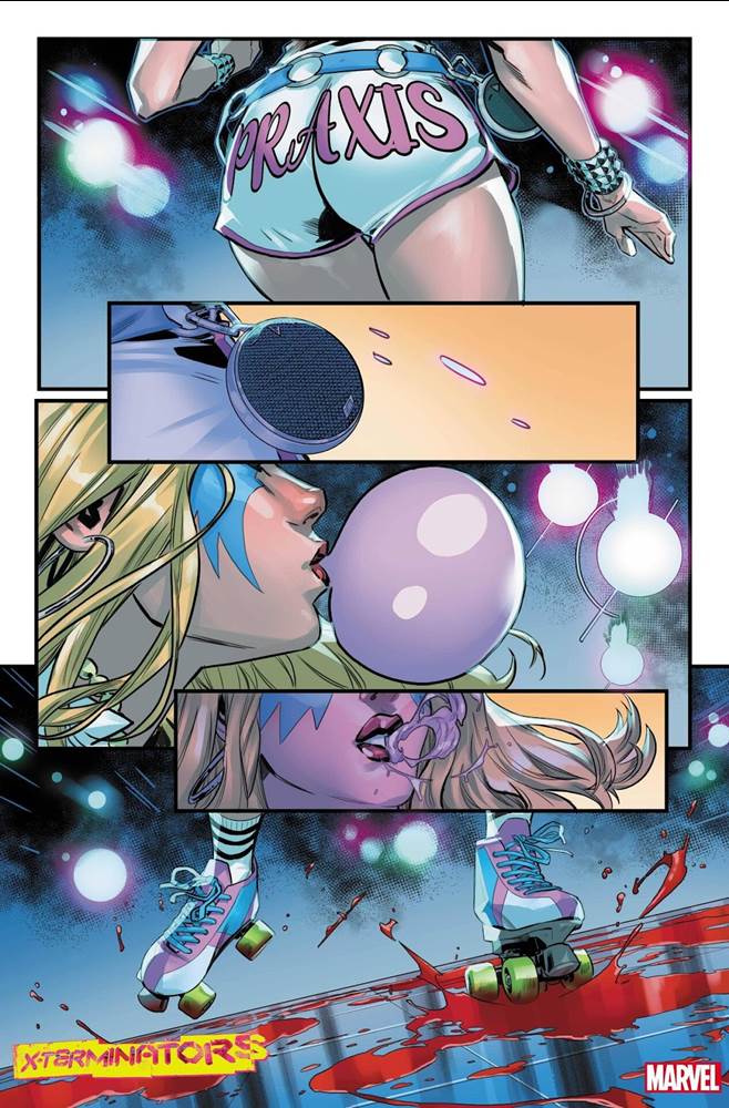 - A special first look at the issue – which carries a parental advisory warning – shows Dazzler taking a leisurely skate through puddles of blood with her bubblegum popping and her tunes blaring.