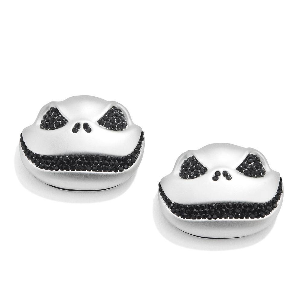 “Jack Skellington's sinister smile is captured on these detailed dimensional earrings. The molded brass face features a silvertone finish with the Pumpkin King's mouth and eyes crafted with faceted black glass stones."