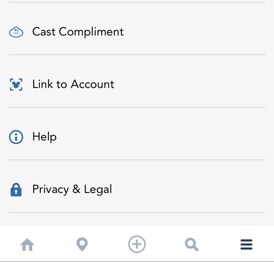 - To share some magic with the Cast Members, either search for “Cast Compliment" in the app or press the three bars in the lower right corner of the app to access a direct link, as shown below.