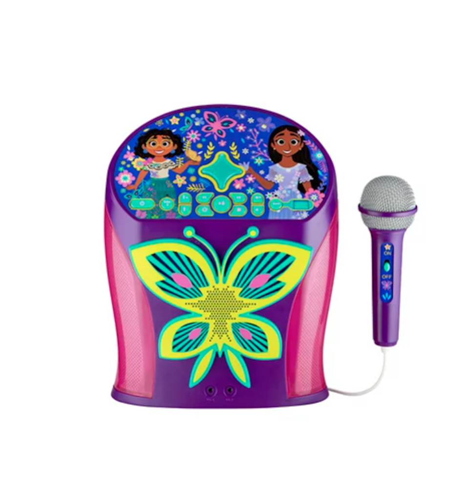 It's time for a Encanto karaoke party! This kids karaoke microphone and speaker set features a built-in wired microphone and Bluetooth connectivity, so you can stream and sing along to all your favorite Encanto and Disney music.