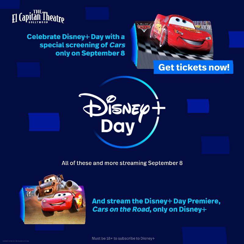 - Tickets are on sale now to see Cars at the El Capitan Theatre on September 8th at 7:00pm, in celebration of Disney+ Day.