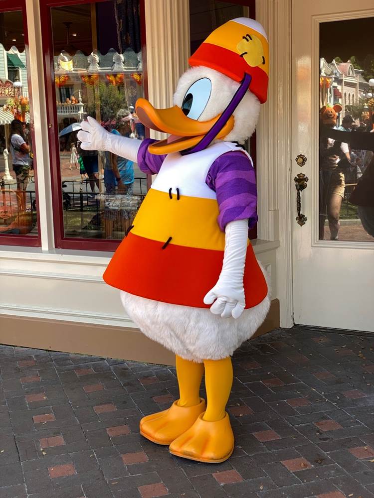 - You can see Mickey Mouse as a jack-o-lantern, Minnie Mouse as a witch, Goofy as a haunted apple tree, Donald Duck as candy corn, and other new looks from Daisy Duck, Clarabelle, Chip and Dale, and Pluto, as well!