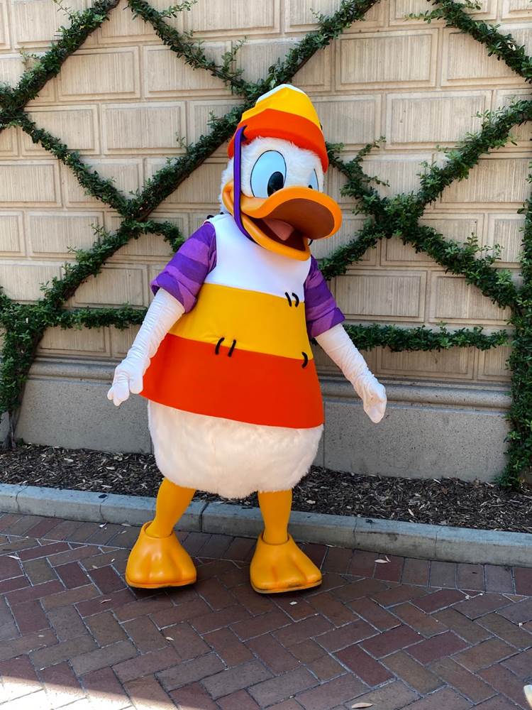 - Donald looks just like a candy corn, with a helmet forming the top of the candy corn.