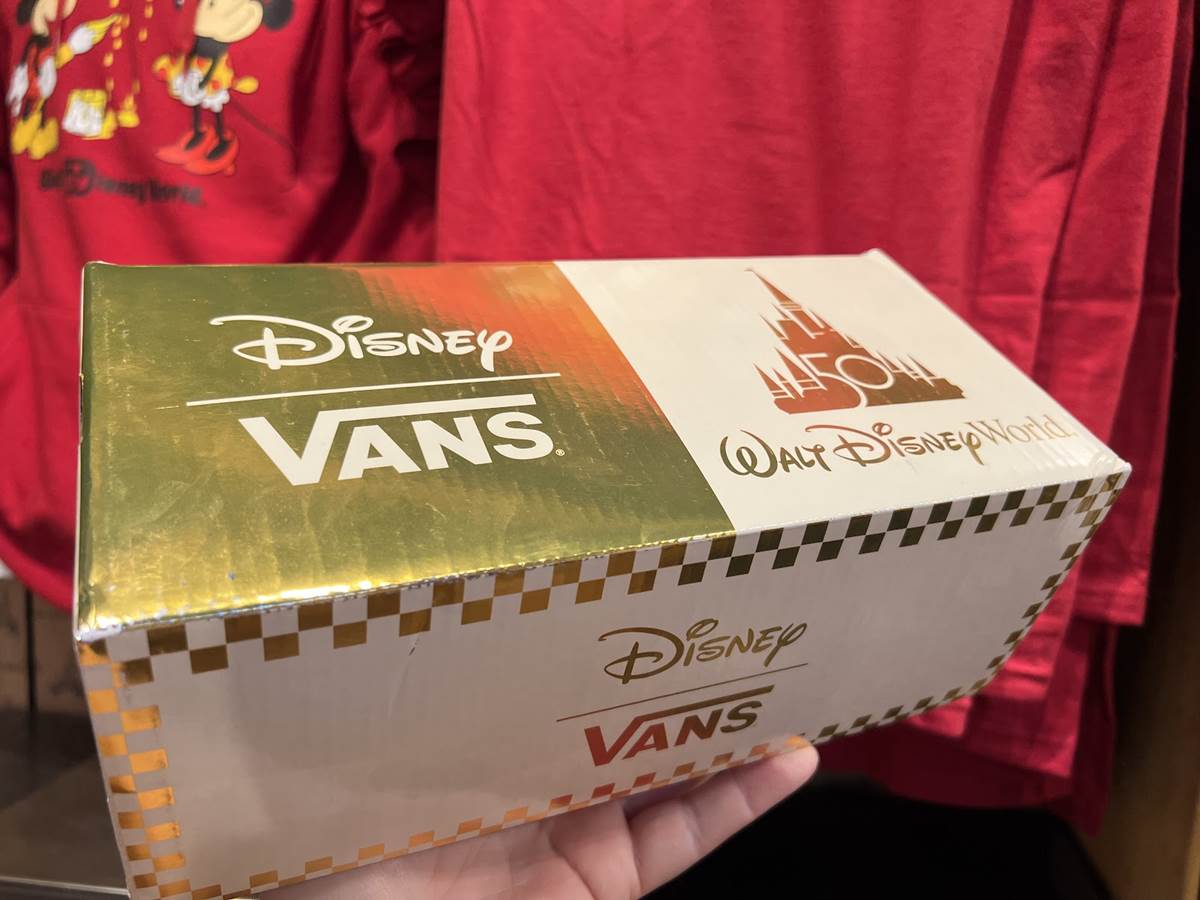Plus, the shoes come in a box also marking the World’s Most Magical Celebration, complete with the resort’s 50th anniversary logo. This pair of Vans was spotted at the Marketplace Co-Op at Disney Springs, but are expected to appear at other locations across property featuring the Vans collaboration, such as the Main Street Cinema at the Magic Kingdom.