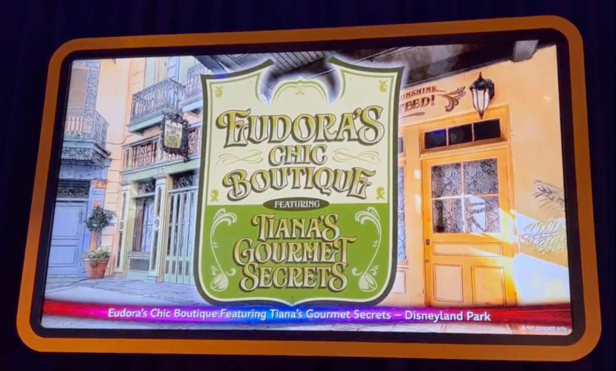 - Also revealed in the video is Eudora’s Chic Boutique Featuring Tiana’s Gourmet Secrets, a new store that will open on September 20th in New Orleans Square at Disneyland.