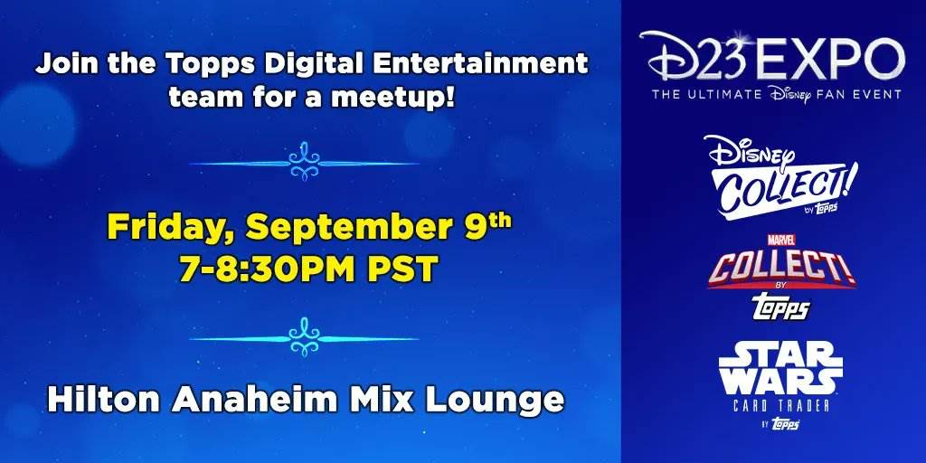 Topps Digital, the company behind Disney Collect!, Marvel Collect! and Star Wars Card Trader, will be holding a meet-up tomorrow at the D23 Expo.