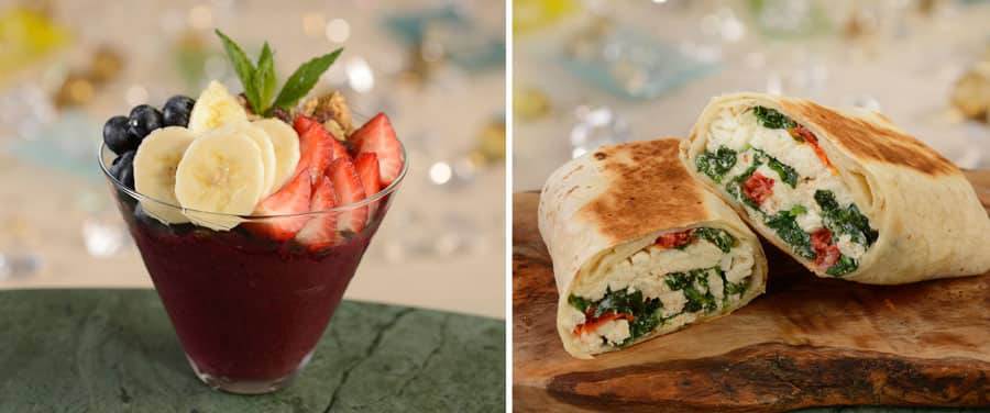 - There are a couple of new breakfast dishes to start off your day. For those looking for a lighter, healthier option, you’ll be delighted to find two selections–the plant-based Açai Bowl with a house-made açai sorbet, strawberries, bananas, blueberries, granola, and agave as well as the Egg White Breakfast Wrap with egg whites, spinach, roasted tomatoes, and feta served on a flour tortilla.