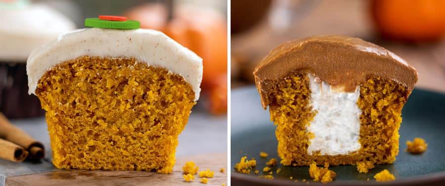 - The Pumpkin cupcake has flavors of ginger, clove, nutmeg, and cinnamon topped with cinnamon cream cheese frosting.