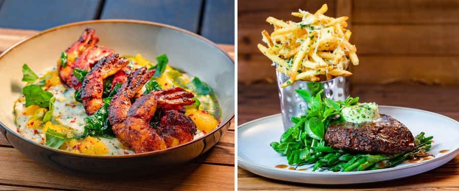 - Disney’s Grand Californian Hotel & Spa is home to the Hearthstone Lounge with some new eats and sips on its revamped menu that will light up your palate. Recently added, the Achiote Shrimp & Grits has grilled shrimp on corn porridge grits, Oaxaca cheese, chile butter, roasted cherry tomatoes, and aromatic herbs while the Steak Frites feature a hickory molasses-glazed prime flat iron, garlic-Parmesan thin fries, blue lake beans, demi-glace, compound butter, and watercress salad.