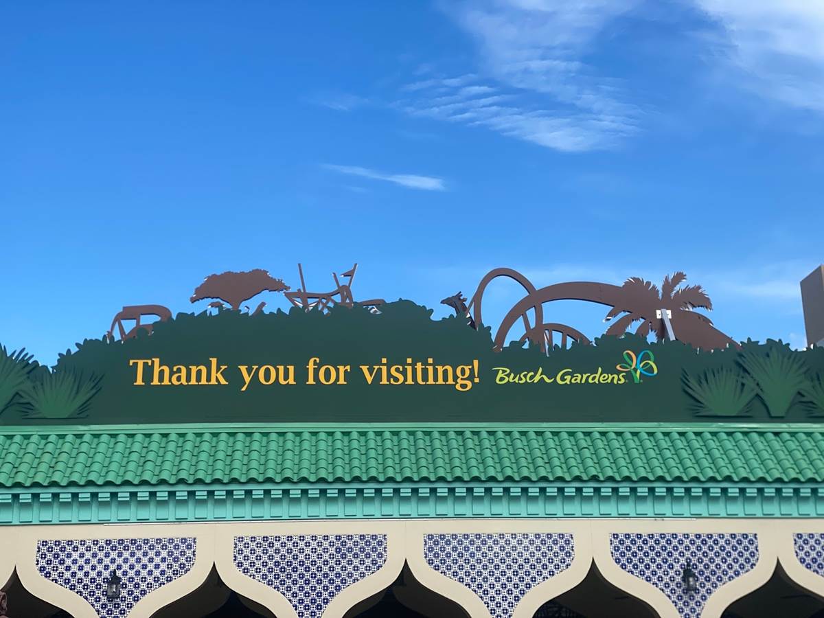 - When leaving the park, the back of the marquee reads “Thank you for visiting!" alongside the park’s logo.