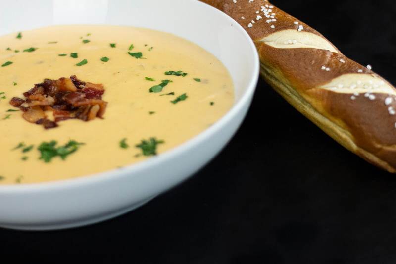 - Guests also can enjoy a hearty bowl of beer cheese soup topped with crunchy bacon and served with a fresh pretzel, or pumpkin cheesecake at Moon Rock Cafe.