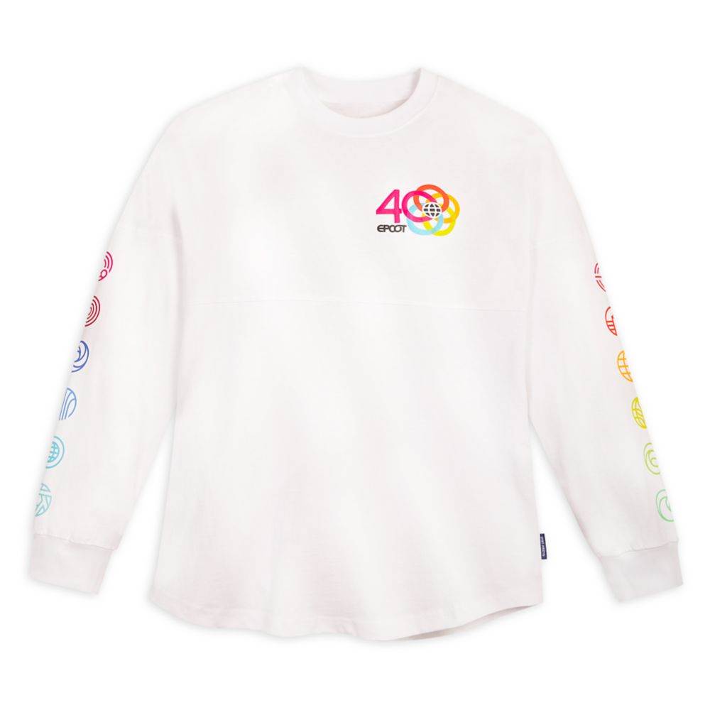 - Right now the only tease we have is of a Spirit Jersey that’s stark white with a giant “EPCOT 40" across the back shoulders. The puffy lettering matches the current font style that is itself a throwback to the park’s original logo from 1982 and features a spectrum of colors, transitioning from yellow to orange.