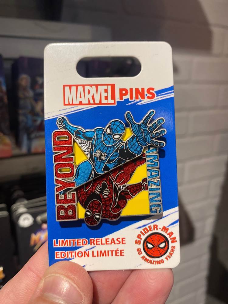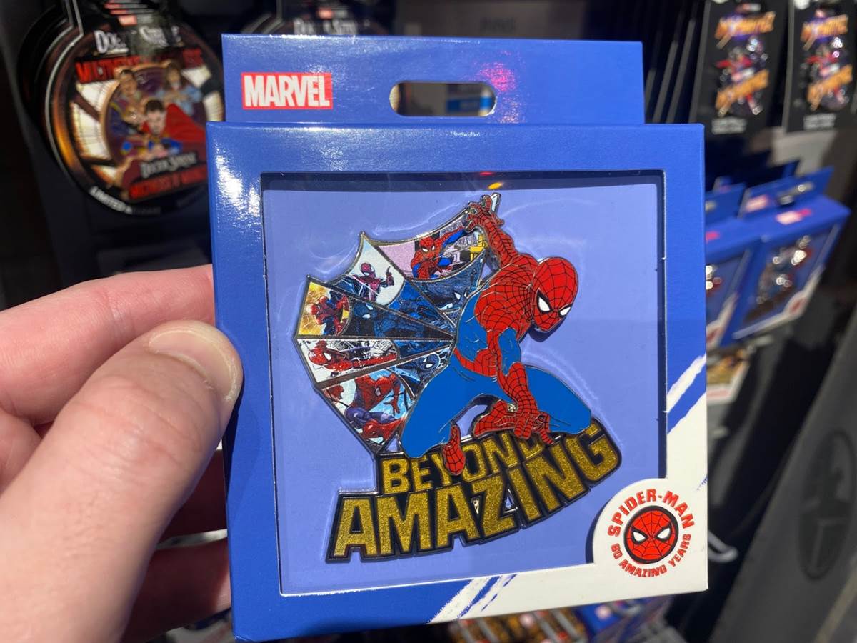 We also have some new pins as part of the “Beyond Amazing" celebration of Spider-Man’s 60th anniversary. This fun jumbo pin retails for $39.99.