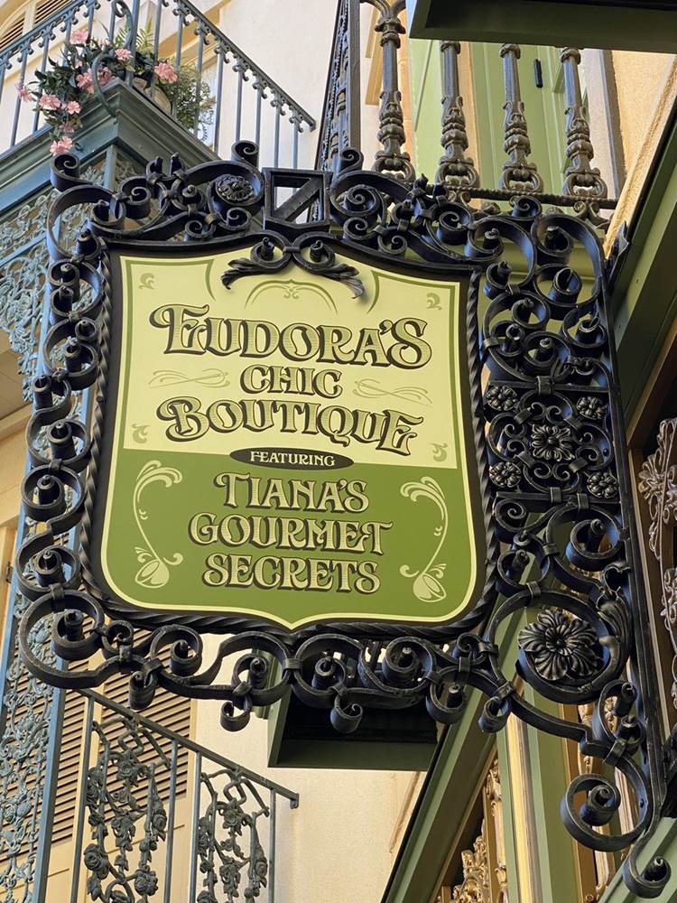 - Eudora's Chic Boutique Featuring Tiana's Gourmet Secrets is a delightful little shop in New Orleans Square.
