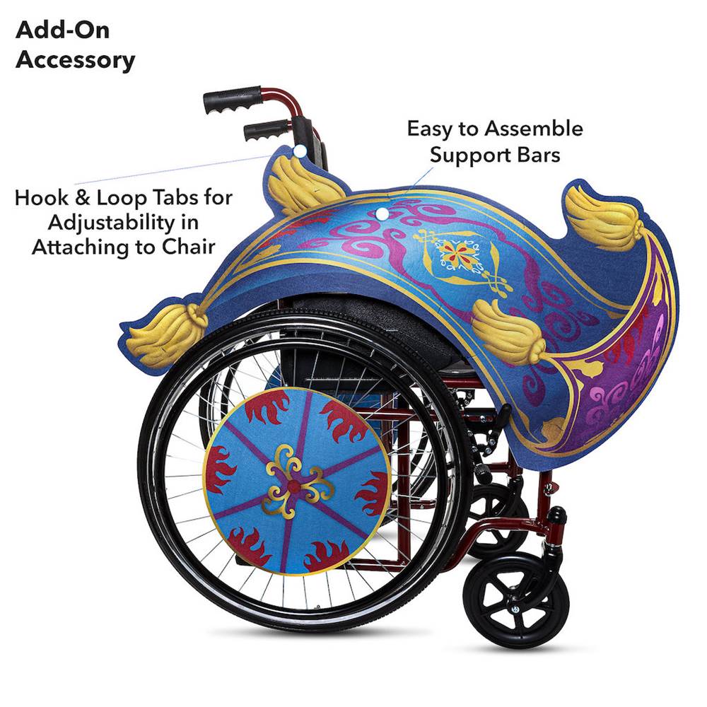 - In addition to the costume styles, shopDisney also features wheelchair covers that transform your chair into a spaceship or royal carriage! These cover sets fit most standard wheelchairs with 24-inch wheels and come with supportive plastic piping pieces for added stability and long self-stick fabric strips to help keep the pieces in place.