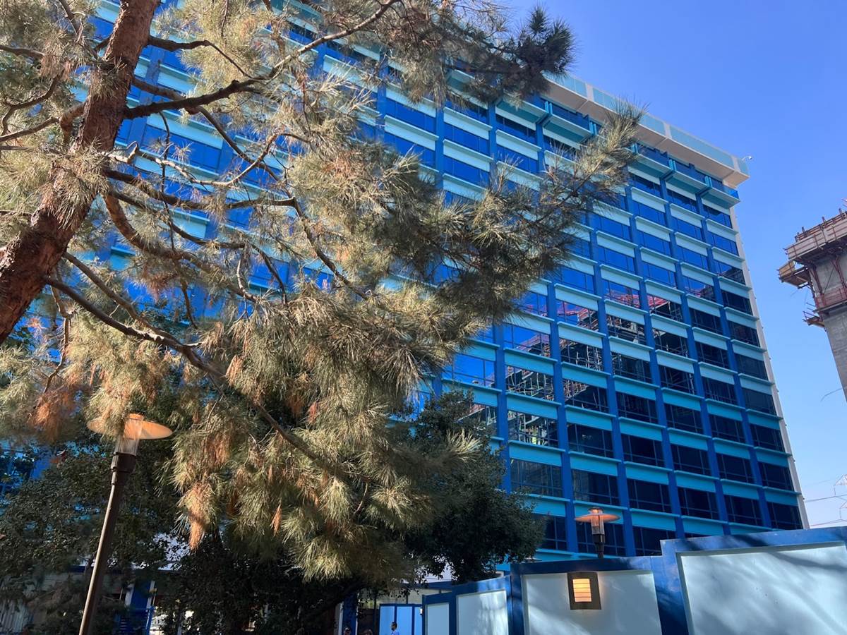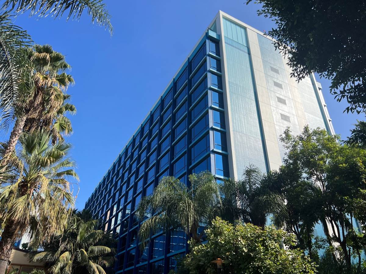 The three main towers of the hotel are all getting repainted, with more light blue being worked into the color scheme, in areas that were previously beige.